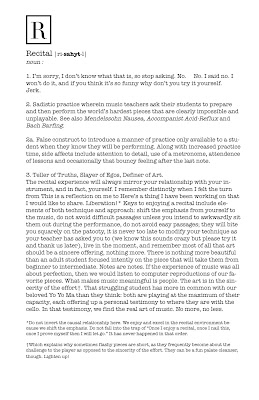 Given that in 2 weeks I am about to perform my first recital as an adult, 50 year old student of the cello, this definition is VERY timely! Thanks you Emily, as always!