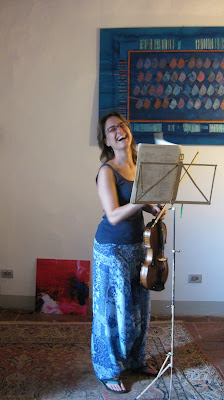 The lovely Rocio, about to play Brahms. Note the magic pants.